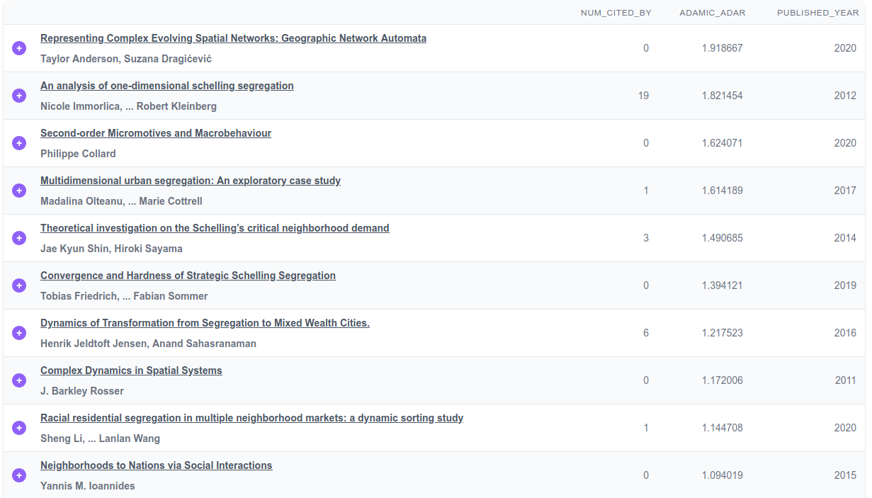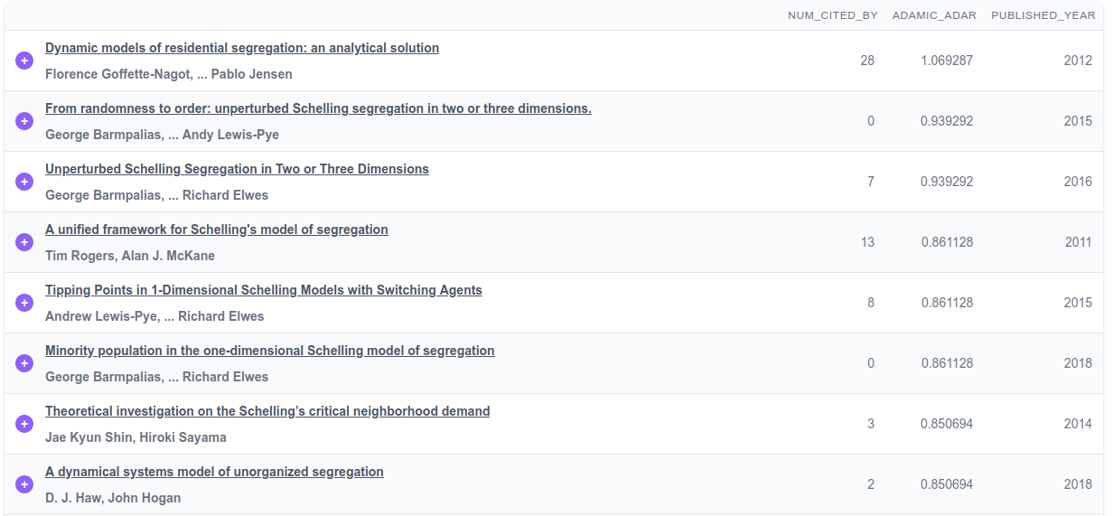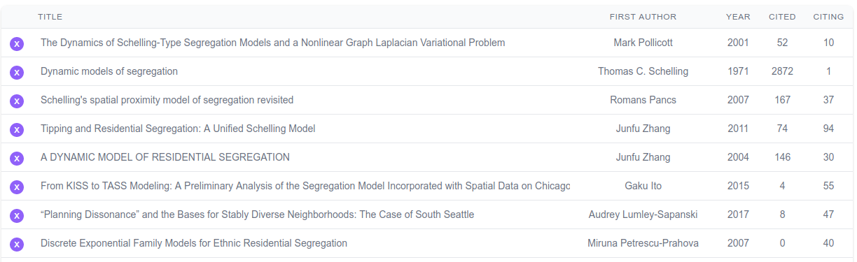 So let’s add a few more papers that look interesting. The top papers tend to focus on the “Schelling Model”, which makes sense because we started with that paper, but we also want to make sure we capture other ideas by looking beyond the first page of the table.