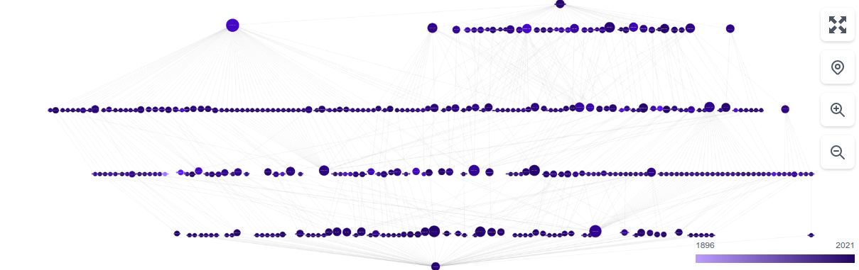 Sometimes the graph is just too big to digest, as it is in this case. For those instances we’ve created a “locking” mechanism. This allows you to lock the graph to a paper of your choice. By doing this the graph will only render the paths which travel through the locked paper. By using the locking functionality, the complex graph from above was reduced to the following: