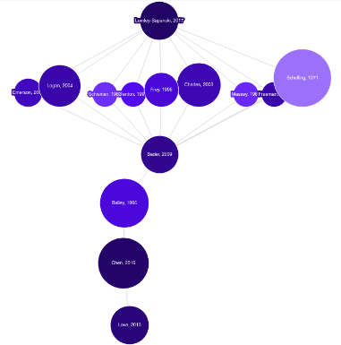 Each of the nodes in the graph is interactive and allows you to learn more about the papers by clicking on them.
