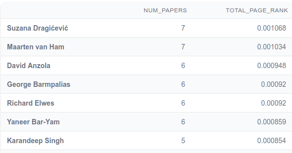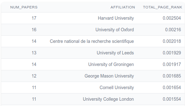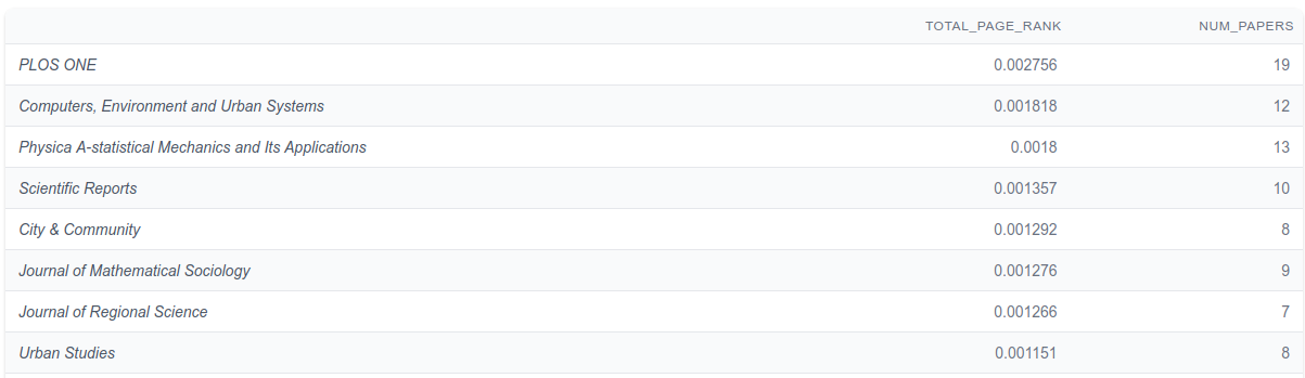 We’ll skip past the Filters section and head down to the tables. The first table covers the Most Important papers, as measured by the PageRank algorithm. PageRank goes beyond simple citation counts and it values papers which are cited by other important papers, so you don’t need to have a lot of citations to be important, just be cited by important papers.